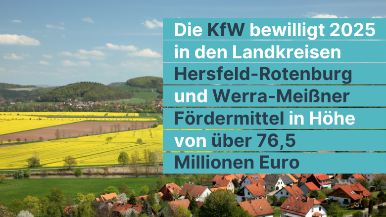 Die Förderprogramme der KfW haben im Jahr 2025 spürbar in unserer Region gewirkt: In den Landkreisen Hersfeld-Rotenburg und Werra-Meißner-Kreis wurden insgesamt 76,5 Millionen Euro bewilligt. Damit flossen Mittel in zentrale Zukunftsfelder – von Energieeffizienz und erneuerbaren Energien über Wohnraumförderung bis hin zu Investitionen in Unternehmen und Kommunen.