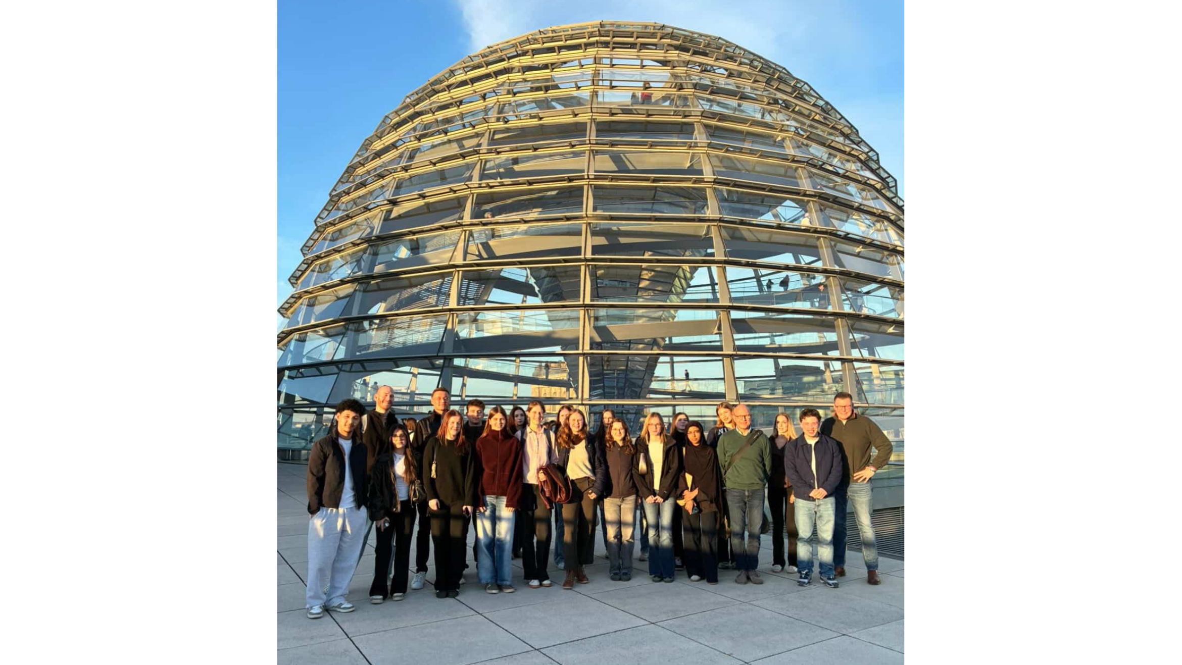 Ein besonderes Highlight war der gemeinsame Besuch der Reichstagskuppel, von der die Schülerinnen und Schüler einen beeindruckenden Blick über Berlin genießen konnten. Für viele war dies ein bleibendes Erlebnis, das Politik und Geschichte anschaulich miteinander verband.